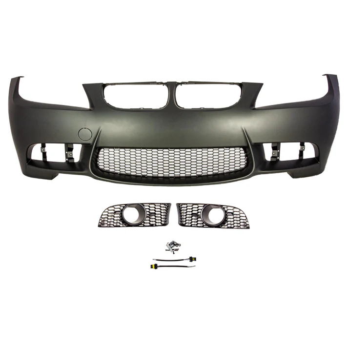 M3-style front bumper designed for the BMW 3 Series E90 LCI (Facelift) models (2009–2011). This bumper features an aggressive, performance-inspired design, giving the front end a sharper and sportier appearance while maintaining OEM-style fit and quality.