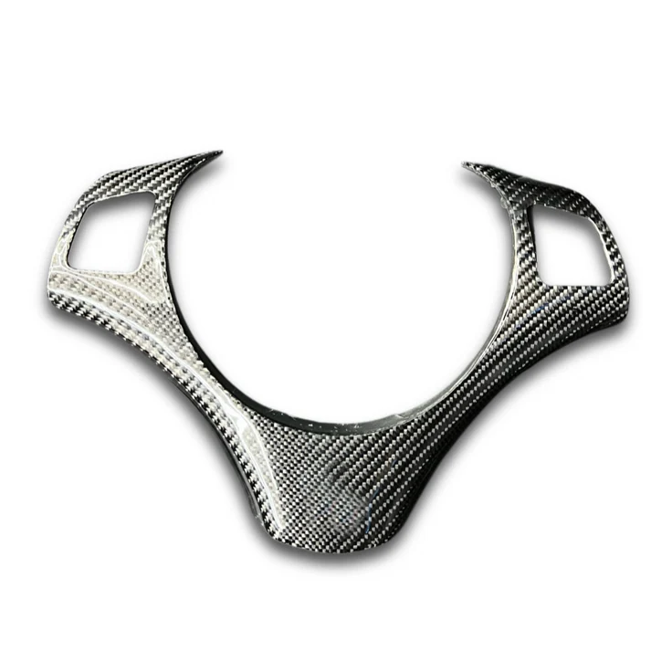 Premium carbon fiber steering wheel trim for BMW E Series models. Enhances the interior look with a sporty, high-quality finish and direct-fit installation.